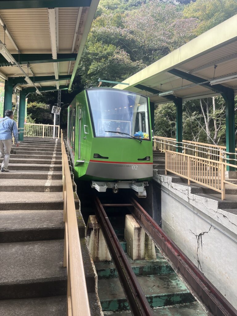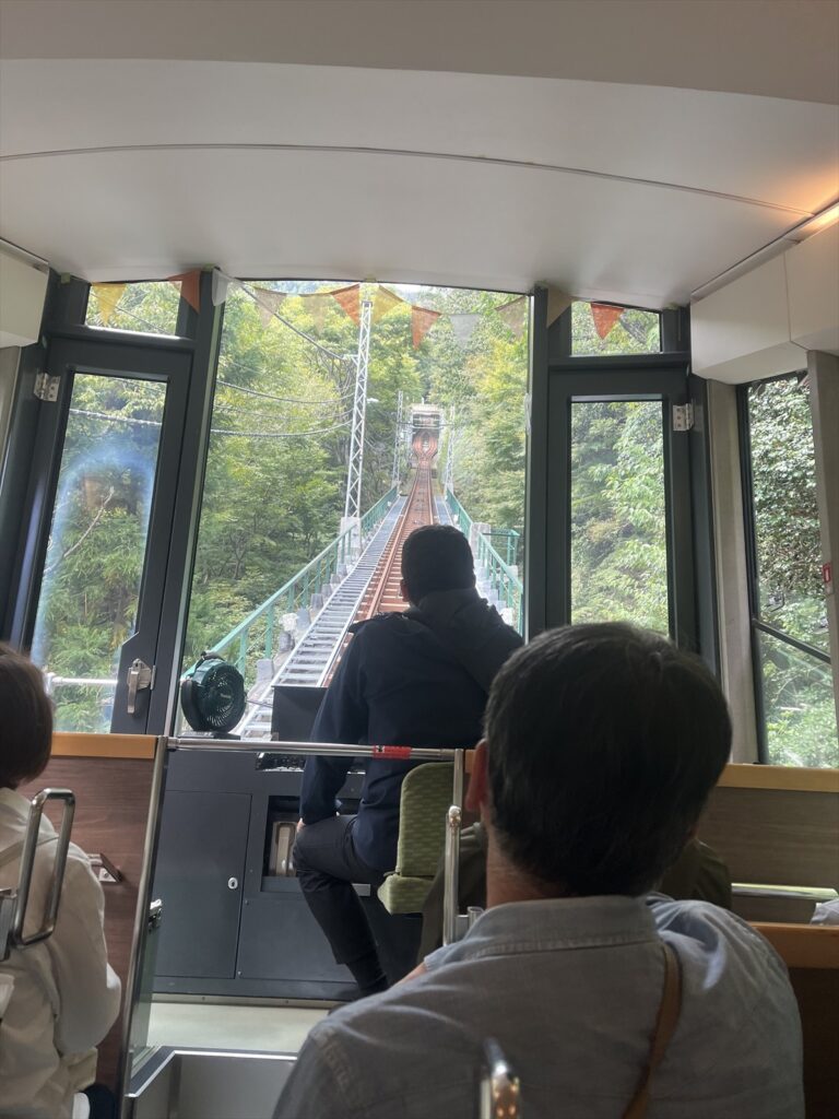 味のあるサインを横目にケーブルカーへ乗車し、急勾配を一気に登ります。