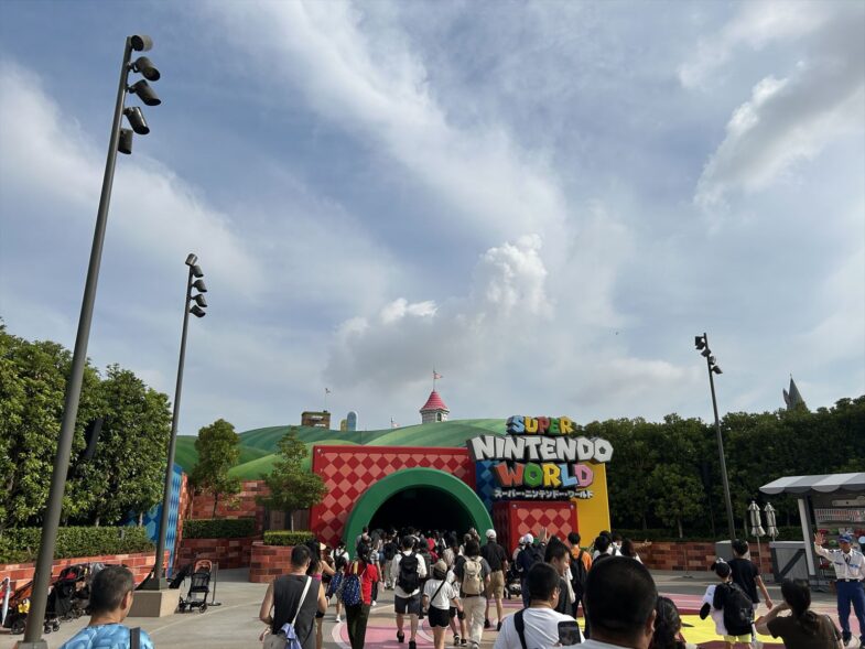 お目当てのスーパーニンテンドーワールドへ歩きダッシュ!(走ってはいけません!) 周りもみんなニンテンドーがお目当てのようで一目散に向かいます! 新アトラクション ドンキーコングに到着!