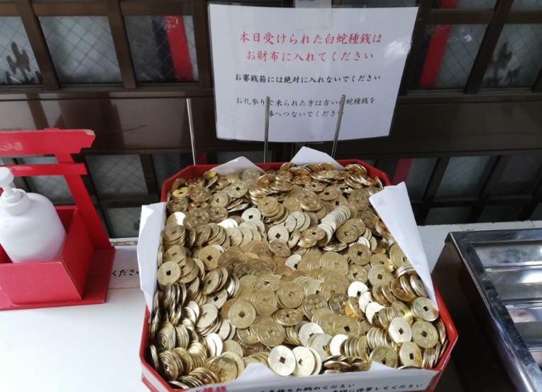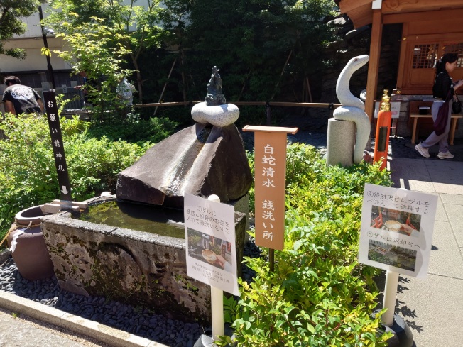洗ったお金と種銭を「白蛇弁財天社」でお祈りし、種銭は財布に入れておくと金運が上がるようです。