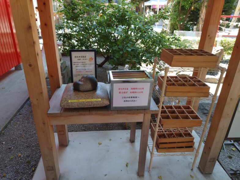 参拝初めに「おもかる狐石」で願いの状況確認。