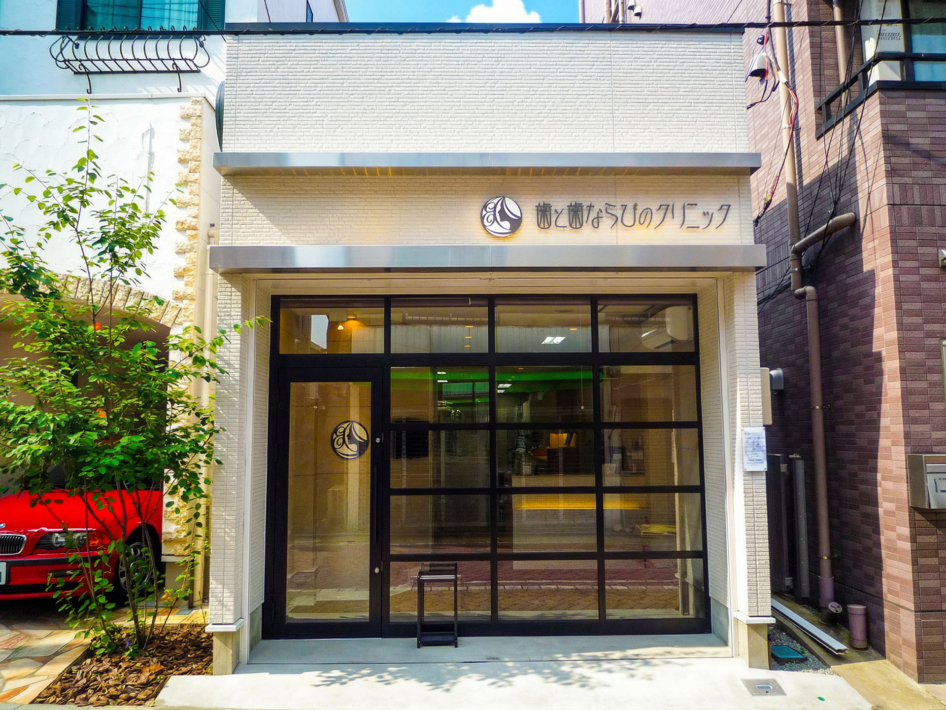 歯科医院に対する「怖い」「入りづらい」といった印象をやわらかくし、日常の延長線上で安心して立ち寄れる外観を目指しました。ロゴやサインは主張を抑えつつ視認性を確保し、過度な医療感を避けた、大人にも通いやすい落ち着いたデザインとしています。